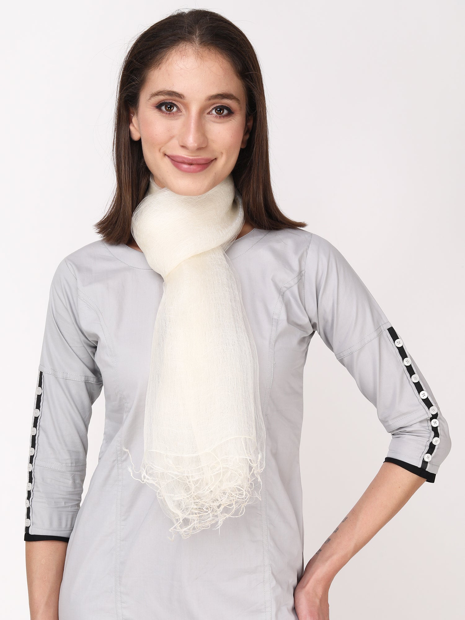 This product is made up of Tussar and Filature silk. This stole is woven in three layers and locked in one side. A unique design for those who enjoy experimenting with style.