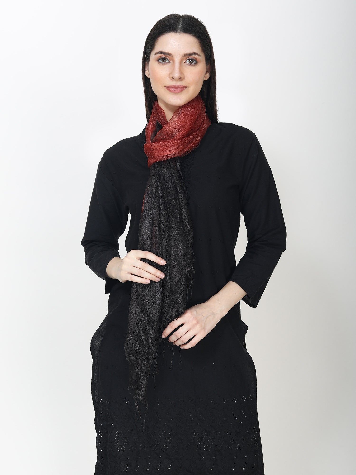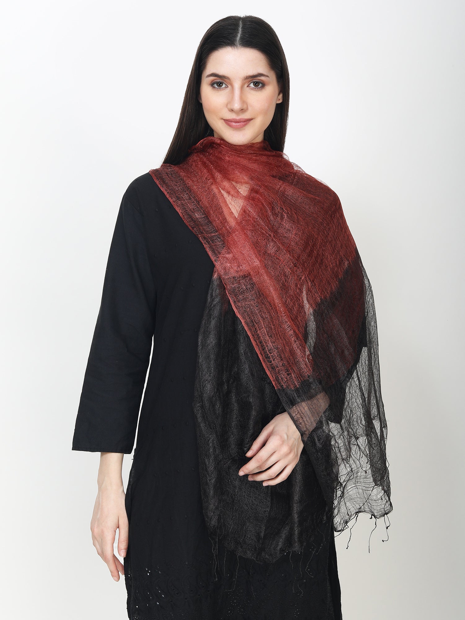 Indulge in luxury with our Pure Silk black and rust colour stole, meticulously handwoven in Bhagalpur by Silk Ruute. This exquisite stole exudes the timeless charm of Bhagalpuri stoles, celebrated for their craftsmanship.
